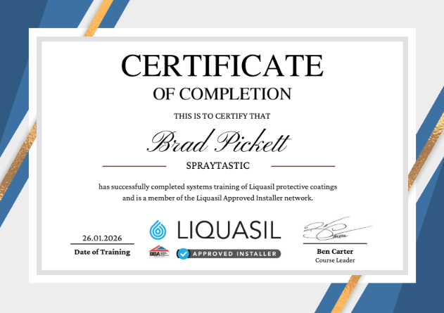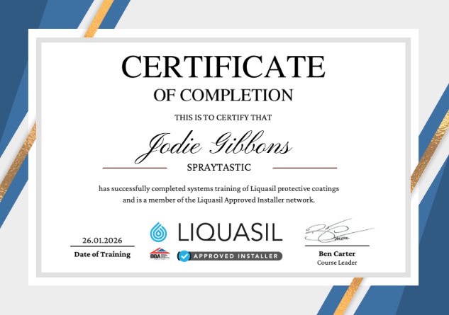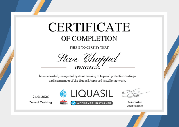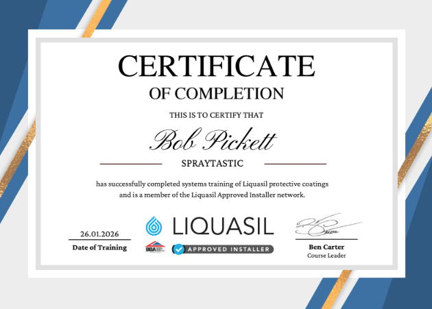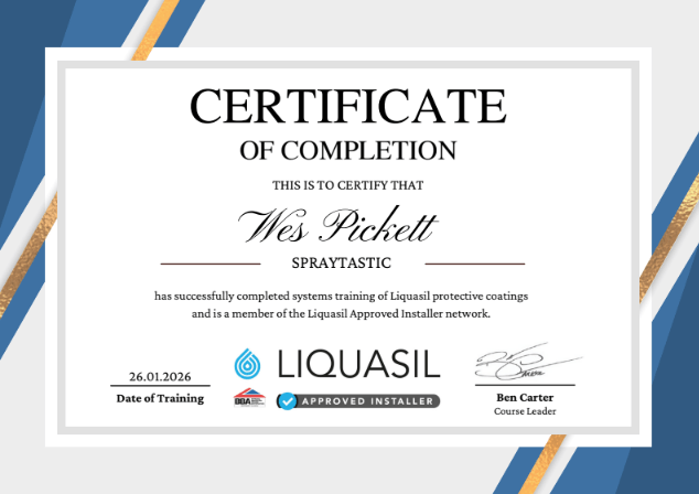 At SprayTastic, we’re proud to be approved contractors for the UK’s leading coating manufacturers, including Alltimes Coatings (Advantage® range), Weathertex, Tor Coatings, HD Sharman, Noxide, Drisilian Lane Coatings, and Nylands Paints. Our work is backed by official product certifications and UK-underwritten warranties of up to 30 years, covering materials, labour, and access. By using fully tested systems such as Advantage® 20 for Metal Roofs, Advantage® for Gutters, and Advantage® Metal Primer, we ensure every project meets the highest standards of durability, safety, and compliance. These approvals and certifications reflect our commitment to quality, reliability, and long-term performance on every job.